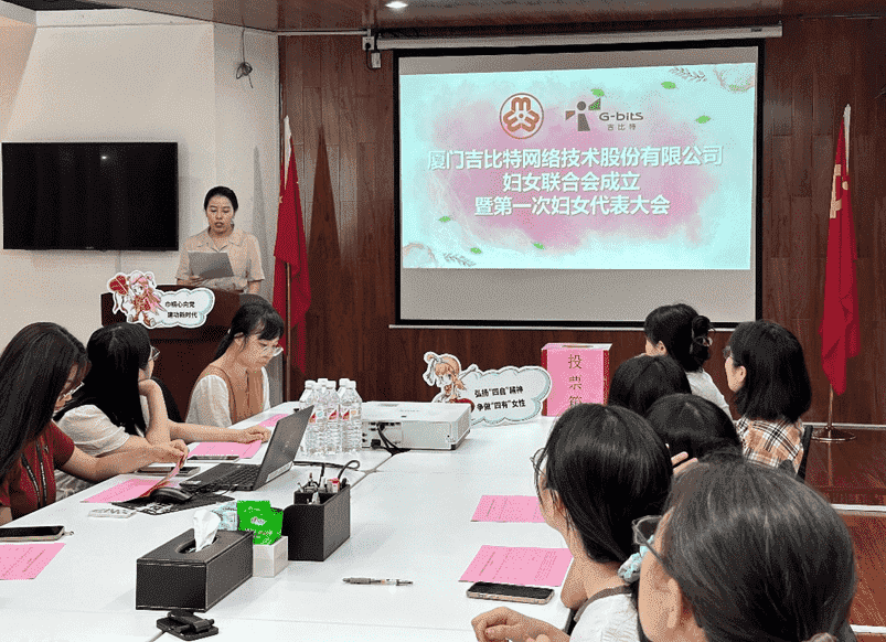 8月12日,,,在厦门市妇联、、、思明区妇联的指导下,,,,厦门J9.COM网络技术股份有限公司妇女联合会成立暨第一次妇女代表大会顺利召开。。。。会议选举产生了第一届执行委员会委员7名,,,其中主席1名,,,,副主席2名。。。