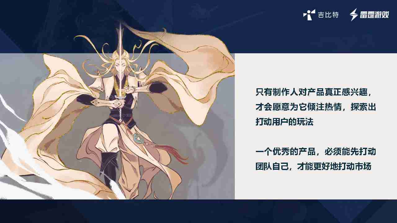 以《一念逍遥》为例,,,,2018年公司创始人萌生想做修仙题材的放置游戏的想法,,,于是找了两位同事讨论了一下产品的概念,,这两位现在是项目的制作人,,,,花了三周的时间把原型做出来,,,,并且确定最初的战斗原型,,以及整个养成的节奏。。通过几次版本迭代验证后,,,也确定后面的内容应该怎么拓展,,,最终在一年左右时间这个项目上线了。。。。当时我们内部有同事看到《⼀念逍遥》上线,,认为品质还不够完美,,,,但是整体营收还不错。。。。就在想那是不是以后我们都做这样的产品??但实际这是错误的认知,,,我们内部不是这么看的。。。游戏在那个时间点上市,,,因为有些市场的考量和营销点的考虑,,,,并不是希望所有项目都是这样。。。。如果它有更好的契机,,希望它可以做得更大、、更好,,,,希望在内核玩法确定之后,,,,外围投入可以越大越好,,所以后面的几个项目是往这个思路上做。。。